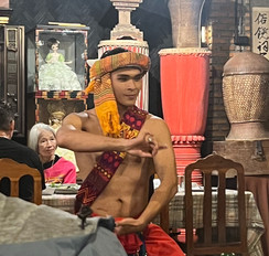 Exhausted from travel, we tucked into a local restaurant for our first taste of the North. I had one of the most traditional northern food, Gaeng Hang Le (a rich, ginger-heavy pork belly curry), loved it. The meal came with a side of entertainment—traditional dancers appeared mid-dinner! It was a bit awkward and funny, especially since they were half-naked, but it was a memorable 'welcome' to the local culture.