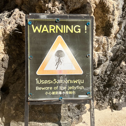 While we were in the water, we spotted a massive one drifting nearby. Luckily, the boat crew was incredibly attentive; they were constantly on the lookout, shouting warnings the moment they spotted one in the water. In most of the beaches we've visited, there were different coloured ones (purple-ish, pink) washed up on the shore They are undeniably beautiful, but even one touch is just dangerous.